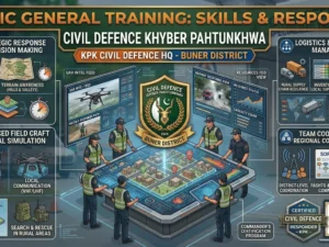As a district organisation in Buner — a region that has historically faced both natural disasters and security challenges — the Civil Defence unit plays a vital role in community protection and emergency response. Its mandate covers protecting and preparing the general public for potential crises, with capacities in warning systems, first aid, firefighting, search and rescue, and basic civil defence training extended to the public, school and college students, and volunteers.